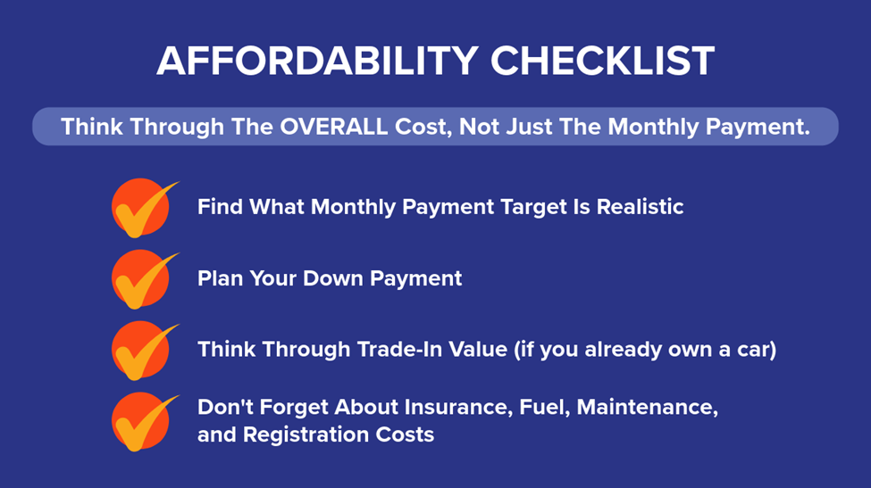 Before you look at cars or loans, pick a monthly payment that works for your budget and leaves breathing room for everything else in your life. The Consumer Financial Protection Bureau (CFPB) suggests you plan ahead for the full cost of borrowing and the overall vehicle cost, not only the monthly payment. [3], [4]
